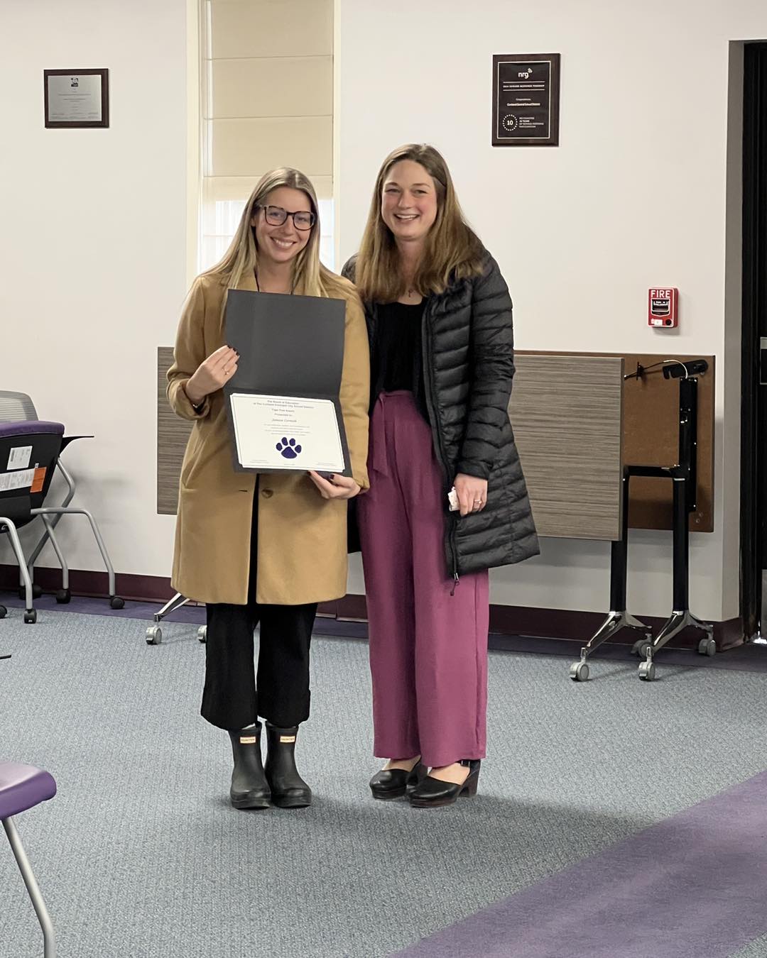 Kristen Cinquanti presented Janesa Cornish with a Tiger Paw Award for her dedication, her passion, and her commitment to the students and staff at the Cortland High School.